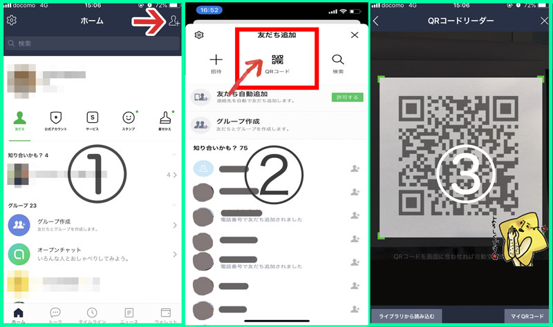 【今パソコンで見ている人】は下記のQRコードをLINEの「友だち追加」のQRコードを読みこむ画面でかざしてください↓