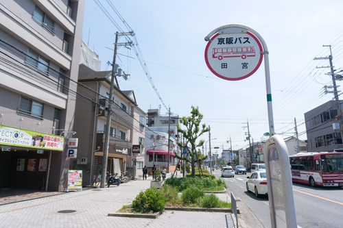枚方市駅南口のバスターミナル4番乗り場から100円循環バスが出ているのでオススメです。