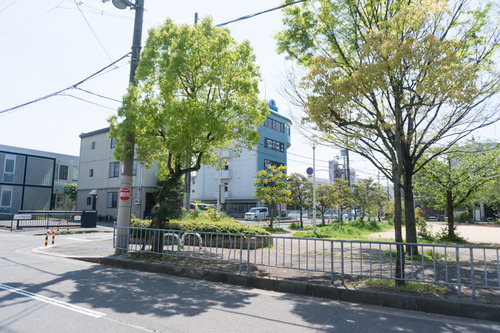右手に「おかしドーム」左手に立体駐車場の「P」がある道を進みます。