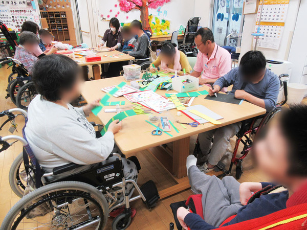 三宅:個別に応じたレクリエーションと、あとせっかくみんなで集まっているのでそれを活かして集団レクリエーションという形で、風船バレーボールをしたり、みんなで季節の工作を作ったりしています。