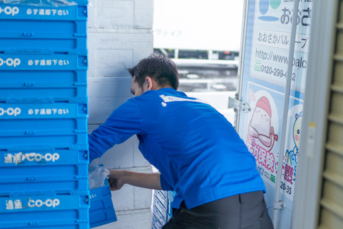 実は、玄関先まで届けてくれるおおさかパルコープの個人宅配の車なんです。