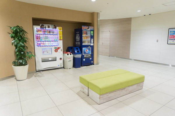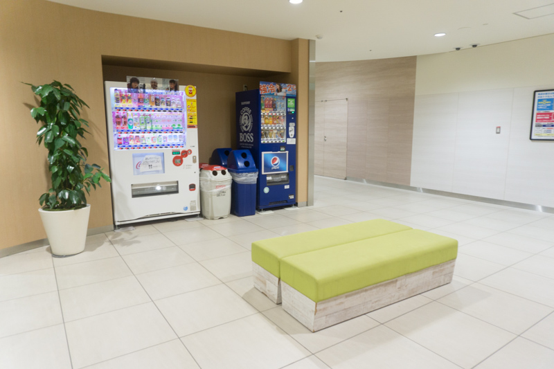 (南館の各階トイレ前にはこんな自動販売機がある休憩スペースも)