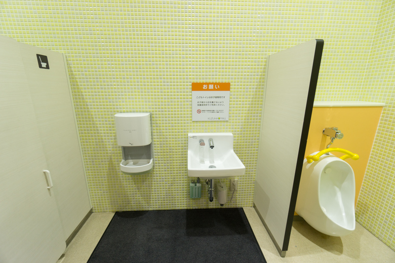 後にもありますが、なんとくずはモール内の各館全フロアのトイレにこども用トイレが設置されているんです!