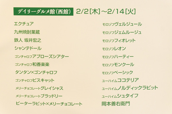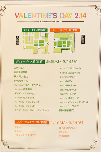 上のポスターに掲載されている催事出店以外の既存店でも、バレンタイン関連商品を出されているところがたくさんありましたので、実際に行ってみて選ぶのがいいかもしれません!