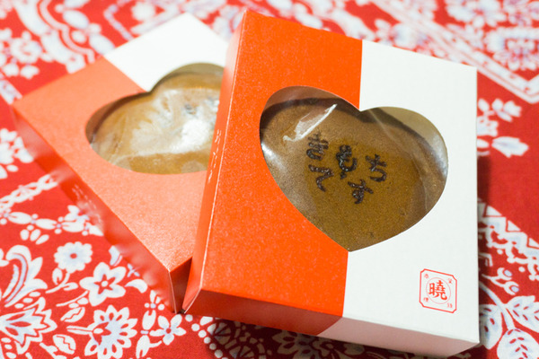 紅白の「♡」の箱入り。「きもちです」の焼き印がかわいらしい!