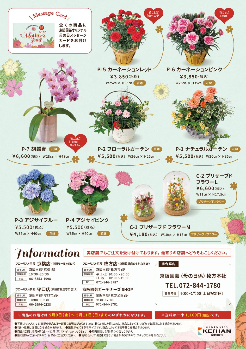 京阪園芸ガーデナーズSHOPでは、母の日ギフトのさまざまなフラワーギフトを販売中。