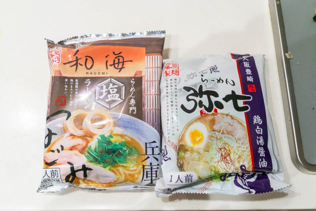 アカカベに、ららぽーと門真でおなじみの和海(なごみ)の袋麺が販売されていたので買っちゃいました。ついでに中津の有名店・弥七のも一緒に。