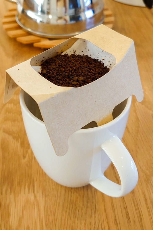よく売ってるドリップパックのコーヒーと同じ要領でコーヒーを淹れられます。