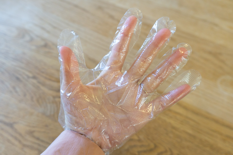 Seriaで買った「シリコンリングゴム」と「ポリエチレン手袋Sサイズ」