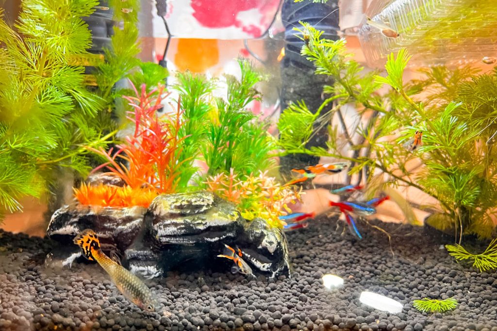 その後、くずはモールの「ひごペットフレンドリー」でも水草とか新しいお魚とか色々購入して、家族共通の癒やしスポットになっています。