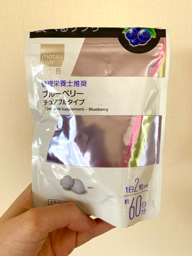 ココカラファインで買った「食べるサプリ ブルーベリー チュアブルタイプ」