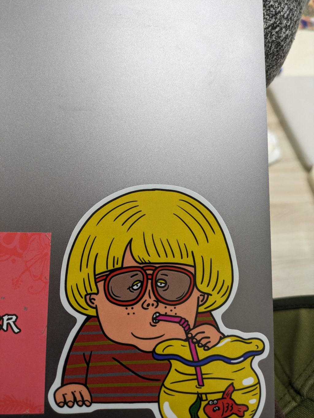 ステッカーも購入したんですが、マックをいい感じに彩ってくれています!金魚水のむとか反骨心すご〜!