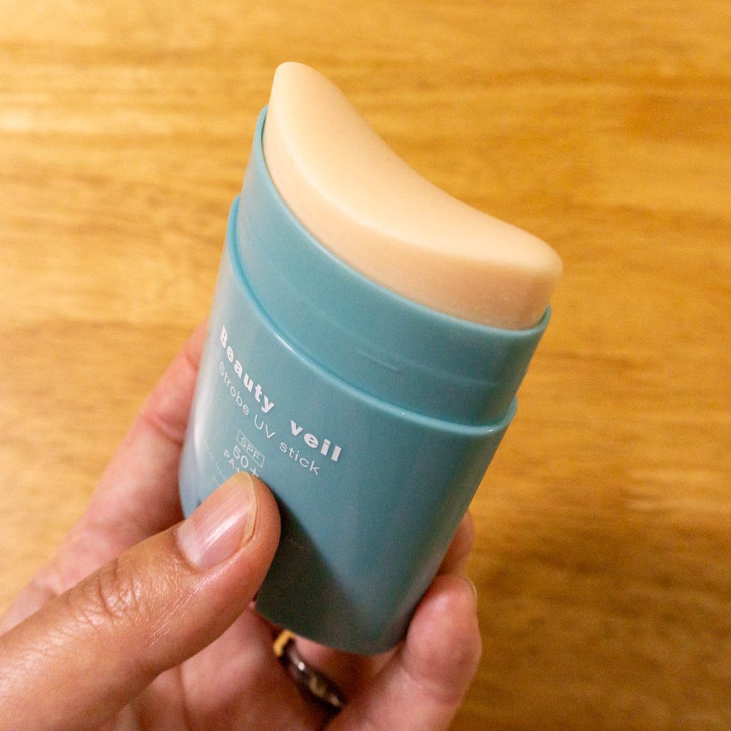 こんな感じで、リップスティックみたいにくりくり回すと出てくるスティック状の日焼け止めなんです!!これめっちゃ便利!!
