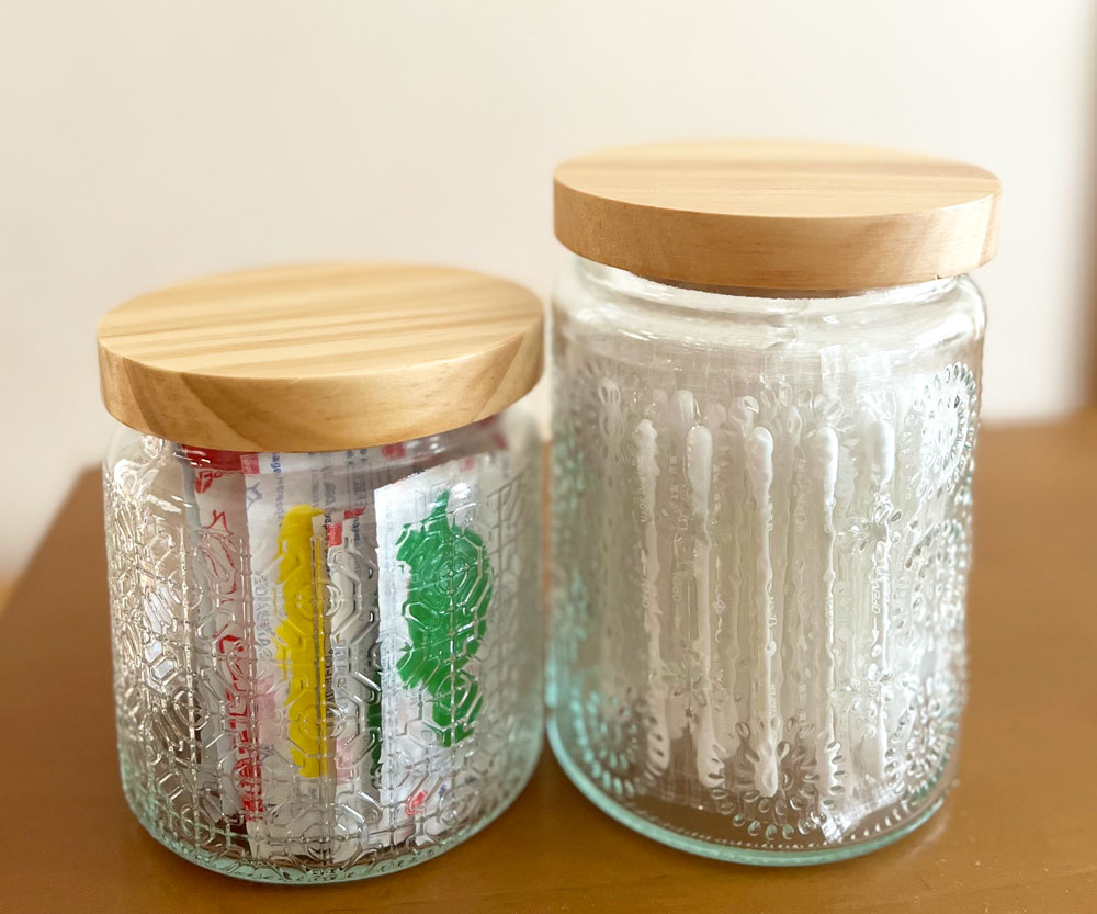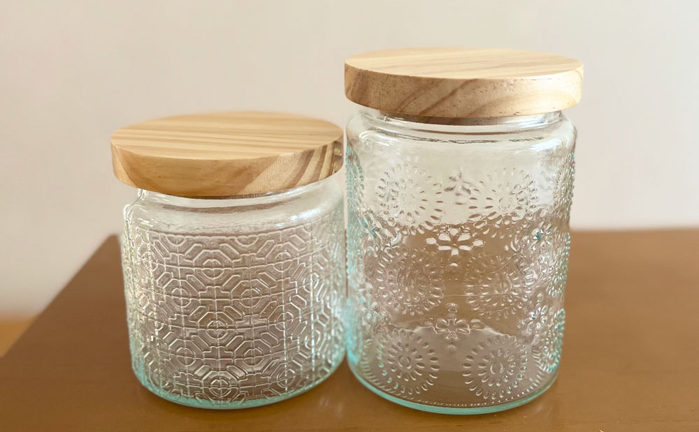 キャンドゥ ひらかたサンプラザ店で買った「エンボスガラス容器」