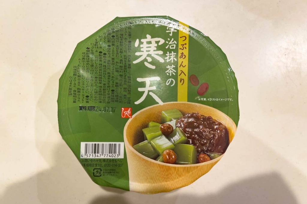 いろんなところのKALDIで買った「つぶあん入り 宇治抹茶の寒天」
