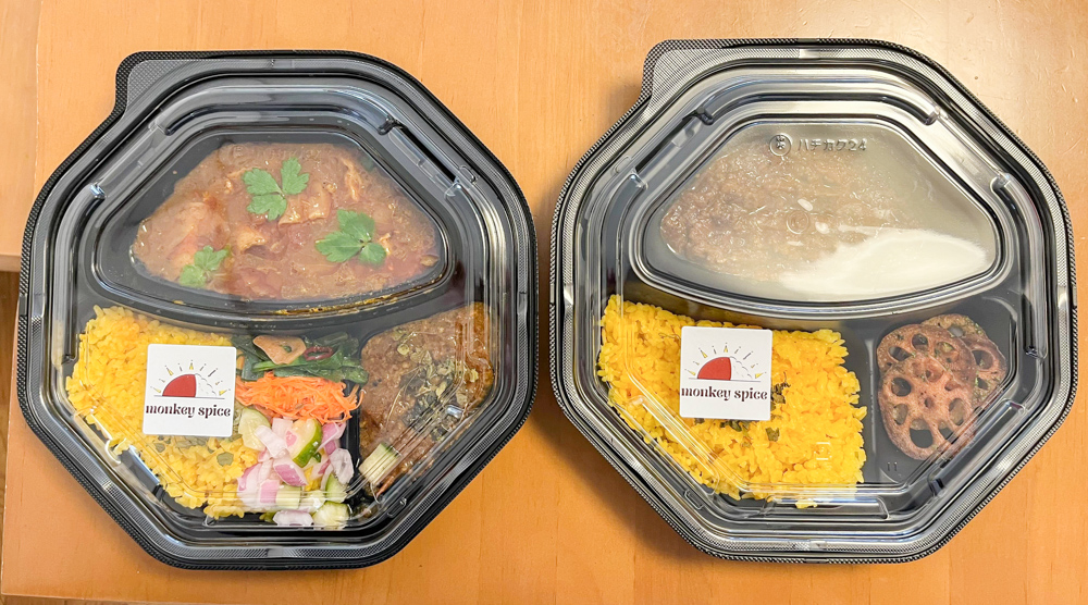 monkey spiceで買った「2種の健康カレー弁当」「キッズカレー」