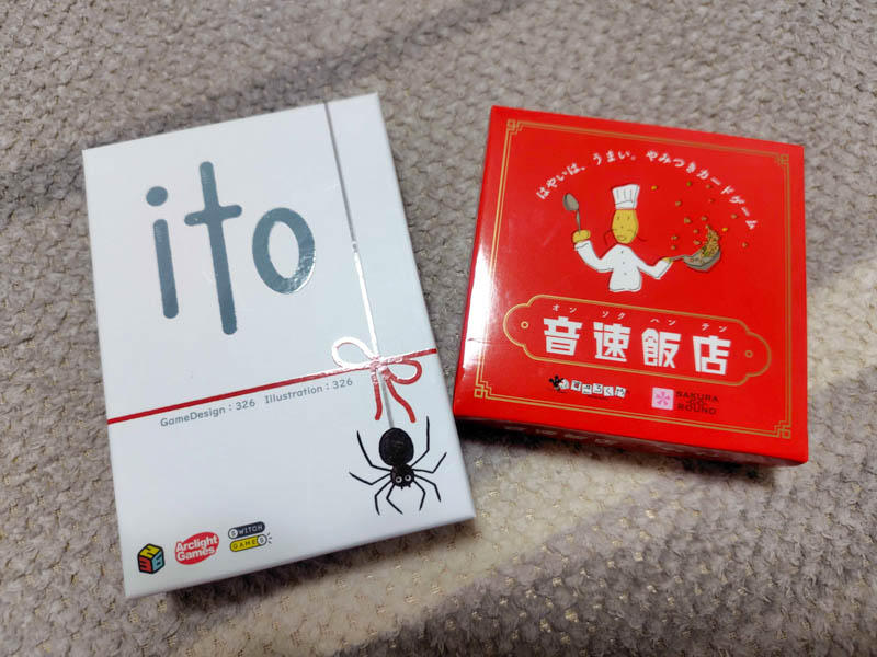 「音速飯店」のほうはスピード勝負のカードゲームで、『チャー』『シュー』『メン』など中華料理の名前に使われがちなワードのカードをメニュー名になるような順番で出していくやつ。