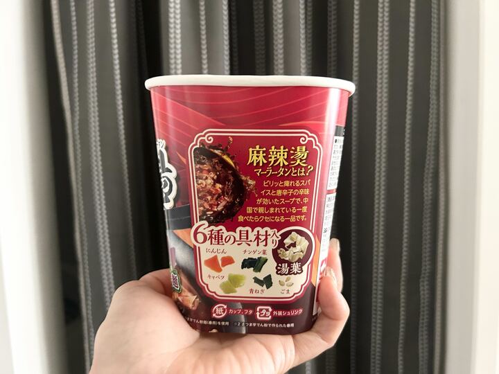 特にTikTokで、本格的な麻辣湯がカップ麺で食べられるということで話題になってるっぽいです。麻辣湯、流行ってますもんね〜!私もこの前初めて京橋の「七宝麻辣湯」というところに食べに行ってきました。好きな野菜を取って、もりもり取れる&薬膳感が健康になる気がしました。笑