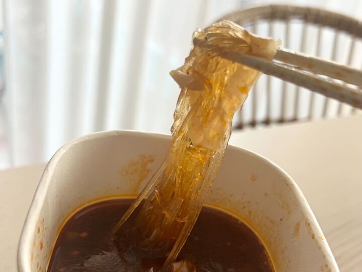 実際に食べてみた感想なんですが、ほんとにめっちゃ本格的な麻辣湯〜!で、ちゃんと辛い!グルテンフリーのさつまいも麺ということも嬉しい。
