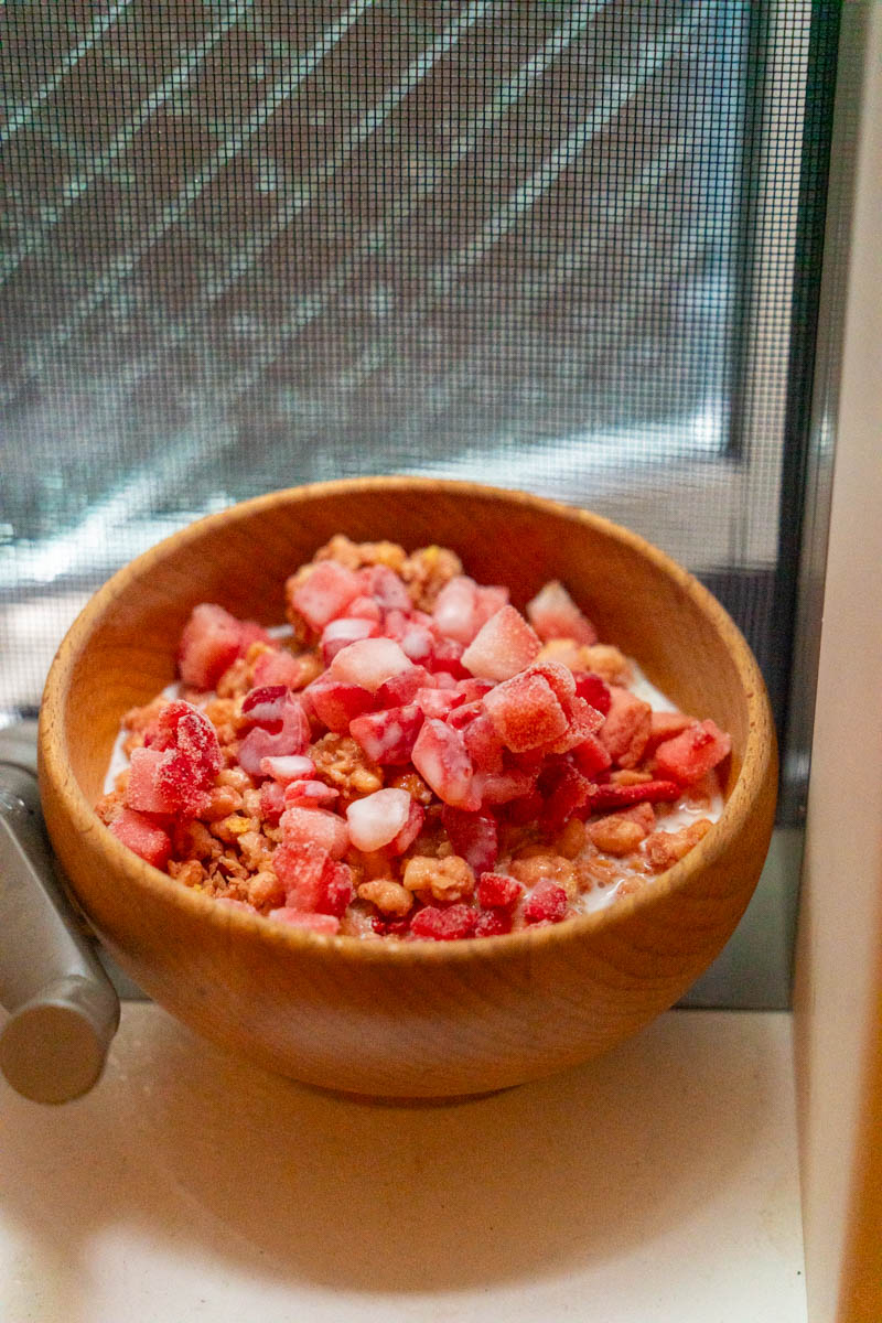 ホットケーキもええ感じに。コスパ的にも大満足……というか実はリピってる商品!おすすめ冷凍イチゴ!!