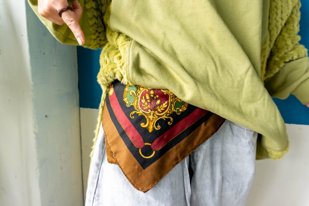腰に巻いたり、肩にかけたり、シンプルなコーデの時にアクセントにスカーフっておしゃれやんってずっと思ってたんです。