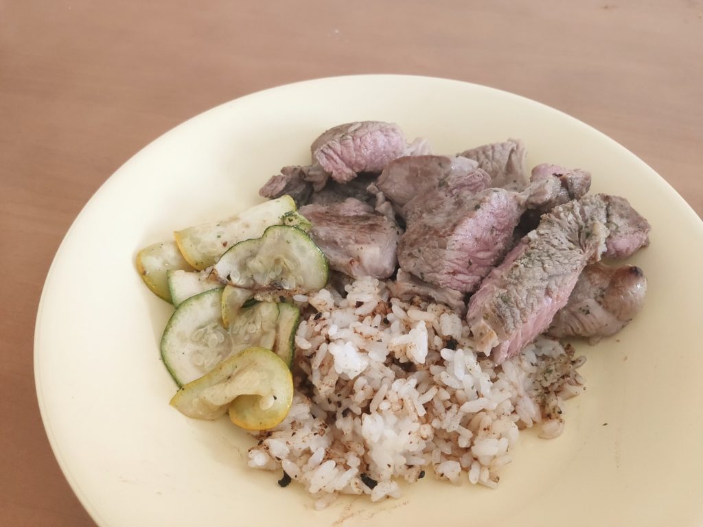 残り油でガーリックライスと冷蔵庫で死にかけてた野菜を炒めて、在宅勤務のお昼にちょっとした贅沢。自分用なんで雑ワンプレート(笑)