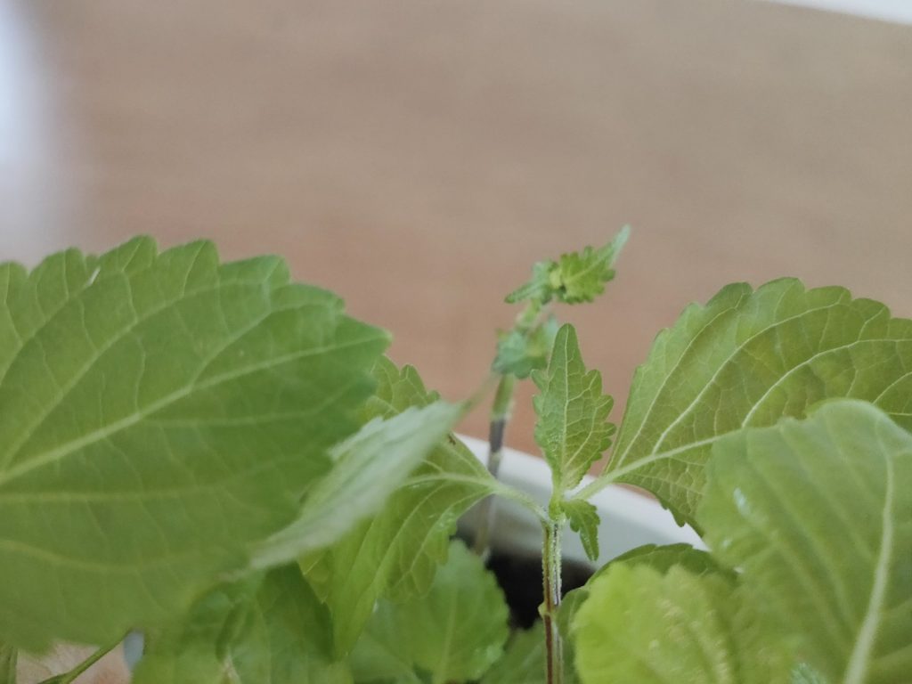 もうだいぶ食べて、育って、食べて、育って…を繰り返した後の写真ですが、まだまだ摘んだところから新たな葉が出てきてます。