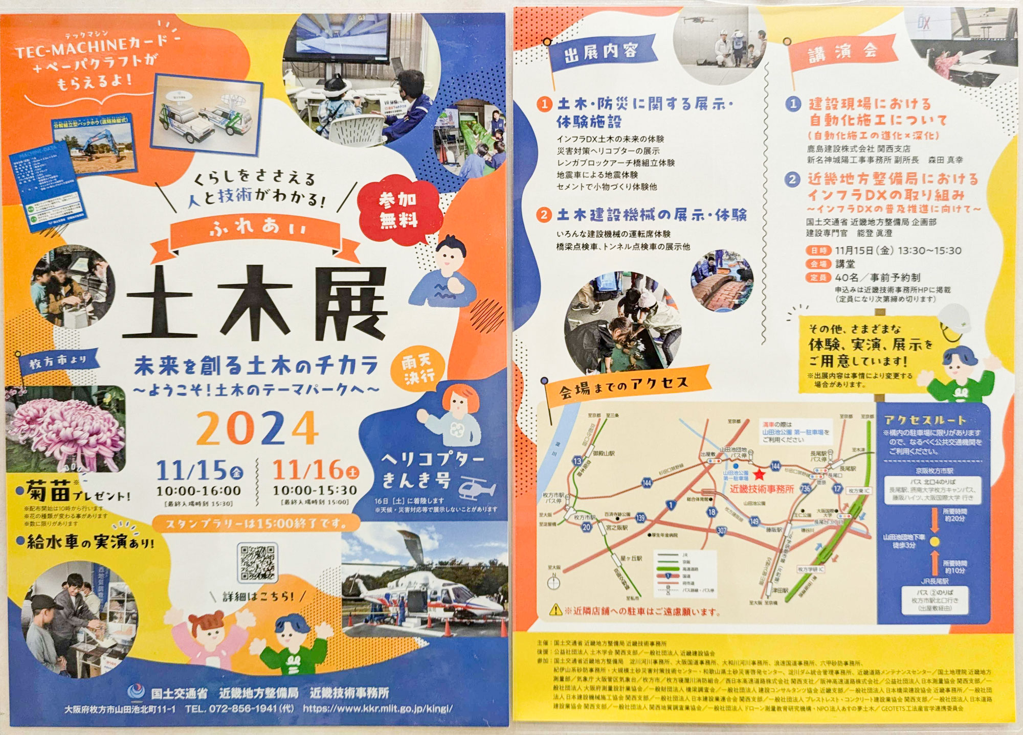 「土木のテーマパーク」は伊達じゃない、ということで、ヘリがきたり、給水車の実演があったりと興味深い感じ!運転席体験もできるということで、お子さんがいる家庭の方は要チェック!