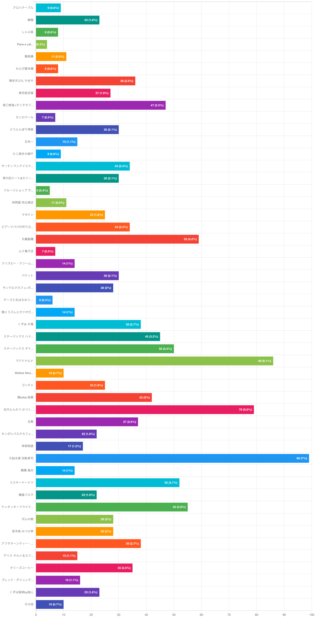 という結果でした。前述のとおりチェーン店が多い結果になりましたが、確かにそうなるわなという気持ちです(笑)