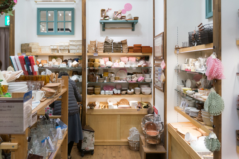 ナチュラルキッチンに大きなバスケットや食器(¥300(税抜)~)など、より魅力的な商品をプラスした、新しいお店です。
