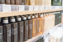 ダイニングキッチンのような店内には量り売りの石鹸、作り立ての生パック、カラフルな入浴剤がたくさん。