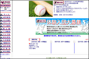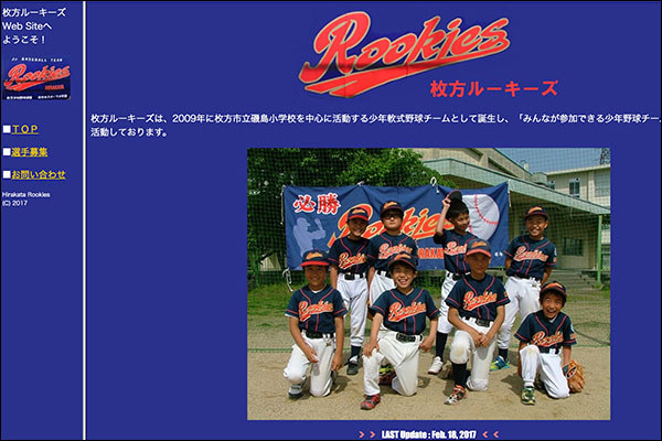 主な戦績:2016年枚方市春季総合体育大会軟式野球学童の部 準優勝 / 2018年度枚方北部リーグ 学童チームが準優勝 / 2018年 会長杯争奪大会 学童チームが優勝 / 2018年 第131回南京都大会 学童チームが準優勝 / 2018年 第20回MINATO杯争奪少年軟式野球大会 学童の部が準優勝 / 2018年南山城支部大会決勝トーナメント 学童が優勝