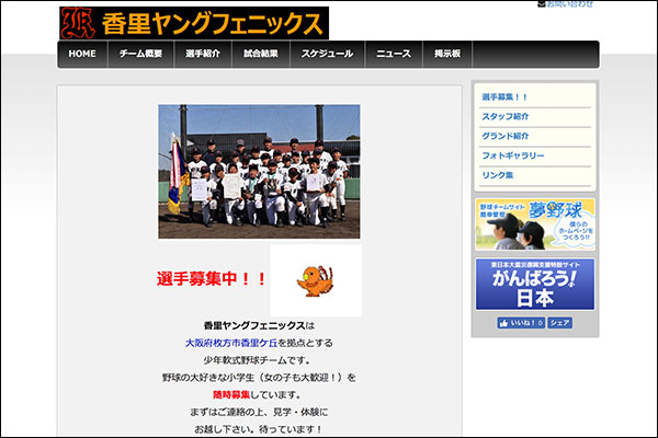 (追記:今回は小学生が対象ですが、中学生の野球チームで枚方ヤングホークスというチームもあるそうです。)