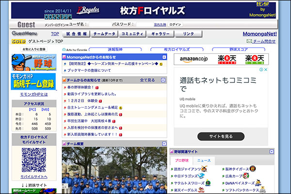 主な戦績:2012年 関西団地軟式少年野球連盟主催第83回選手権大会中央決勝大会進出