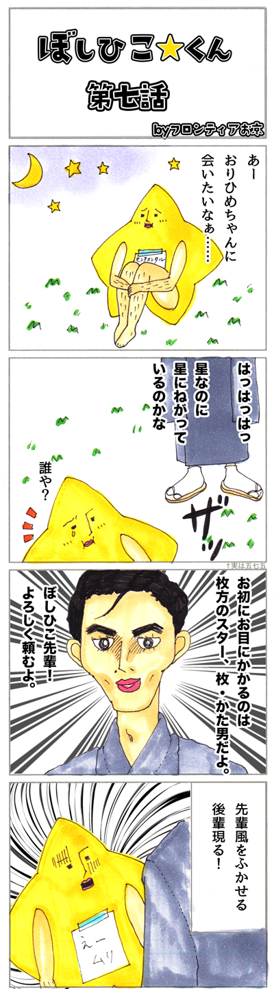 ということで、昨年8月からこっそり連載を続けてきたフロンティアお京(実はふろ@ひらつー)による4コマ漫画「ぼしひこくん」。この機会にまとめて読んでもらおうと思いまして、一昨日から4コマのまとめをアップしております。
