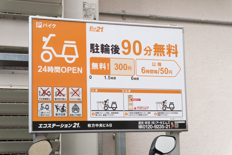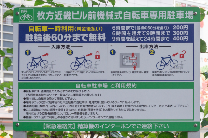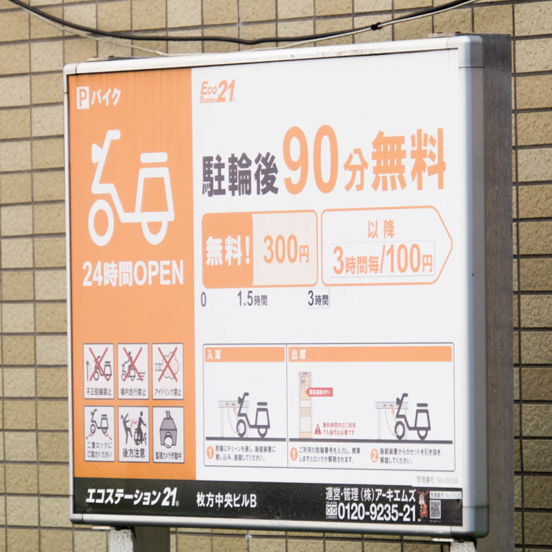 | 12 | 枚方三和ビル前機械式駐輪場 | 1 | 200/6H | 無 | 24時間営業 |