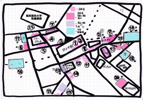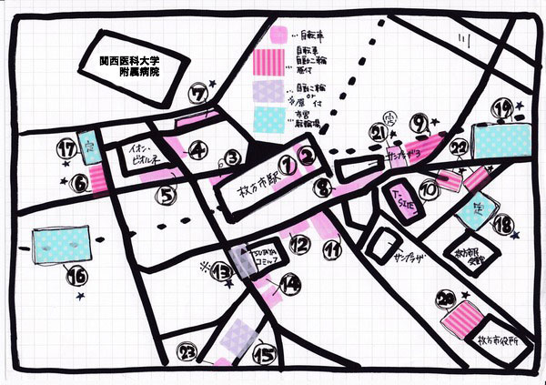 | 20 | 枚方市役所来庁者自転車駐車場 | 来庁者無料 | 来庁者無料 | 来庁者無料 (原付・二輪も可) |