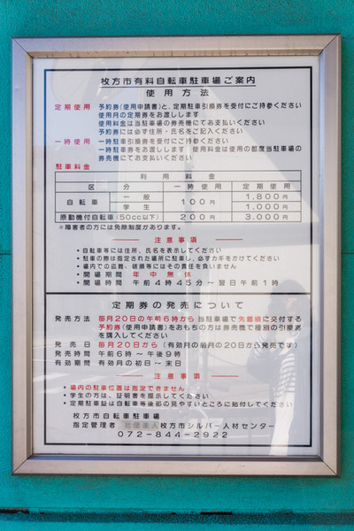 | 21 | 京阪枚方ステーションモール駐輪センター | 無 | 1F 2300/1D 2F 2100/1D |