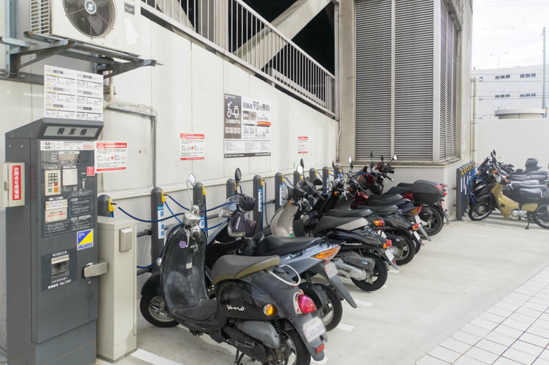 原付と自動二輪が停められます。前述のとおり、ここも原付の排気量制限が2019年2月1日から変更予定。
