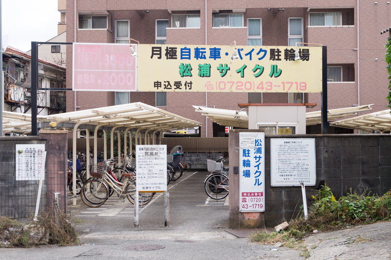枚方市駅からイズミヤ枚方店に向かう天津橋(あまつばし)の手前、京阪電鉄の事務所の隣にある駐輪場。この少し手前にすし一やモスバーガーなどがあります。