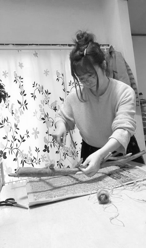 そして流木に編み物を組み合わせたタペストリーなど。