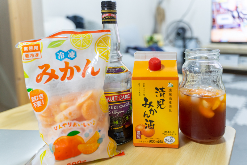 西禁野の業務スーパーで買った「清見みかん酒」と「冷凍みかん」