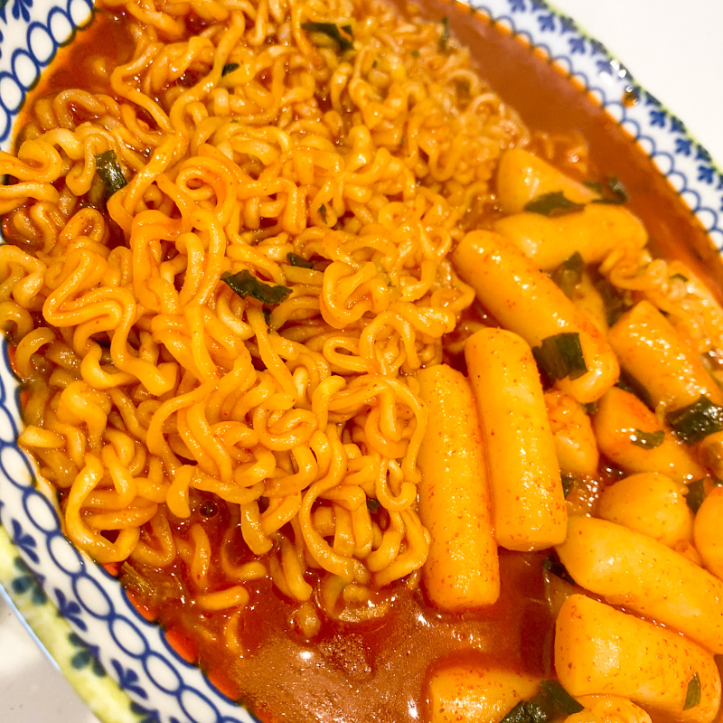 韓国料理の甘辛い餅料理「トッポッキ」とラーメンを合わせた韓国のB級グルメです。
