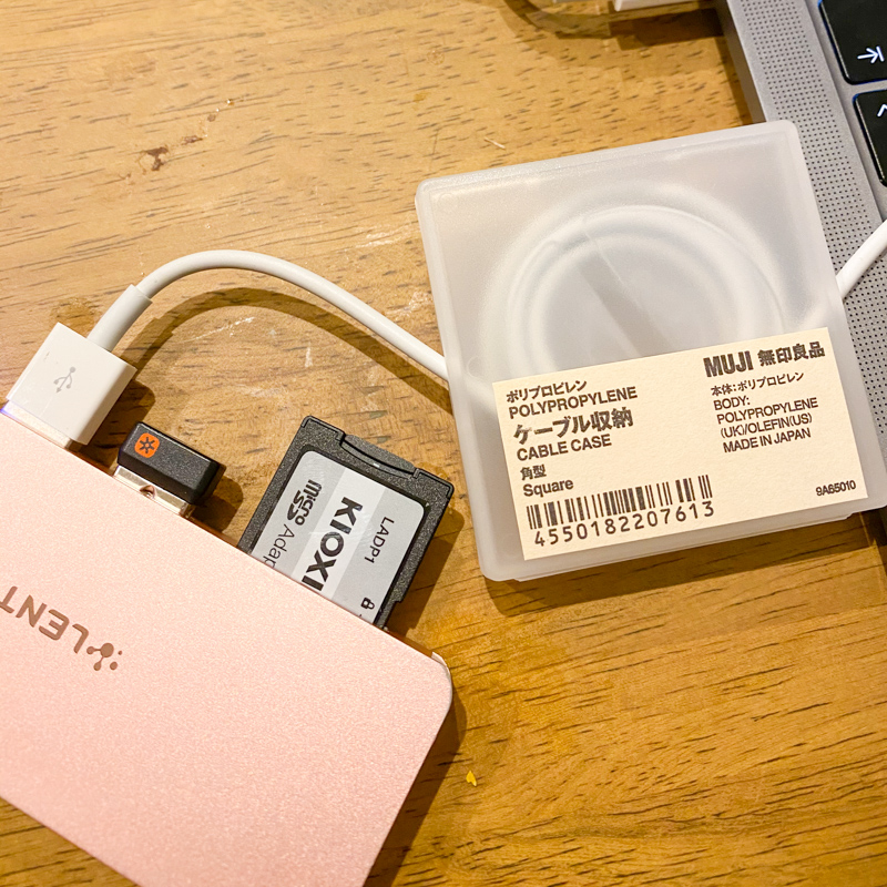 事務所勤務の日は携帯の充電ケーブルの他に、卓上加湿器のケーブルやフットウォーマーのケーブルなんかにも囲まれてるんですよ。周りがもうケーブルまみれ。