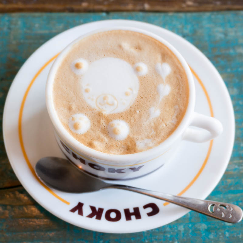 そして一緒に注文したホットのカフェラテにはカワイイくまのラテアートが描かれていました。平日の朝から開店と同時に入店し、アラサー男1人でラテアートの描かれたカフェラテを飲んでいましたが、ぼくは気にしません。笑 (by シュン@ひらつー