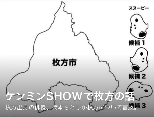 先週放送のケンミンショーにて枚方出身で俳優の橋本さとしが枚方について「大阪と京都のハーフ」「スヌーピーの形」って言及してた【11/17配信】