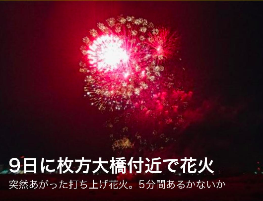 淀川河川公園で行われたライトアップフェスティバルでの枚方の花火のようす2017【9/8配信】
