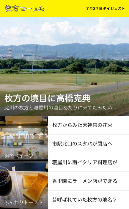 いつも枚方の最新ニュースを届けてくださり、ありがとうございます!これからも楽しませていただきます。