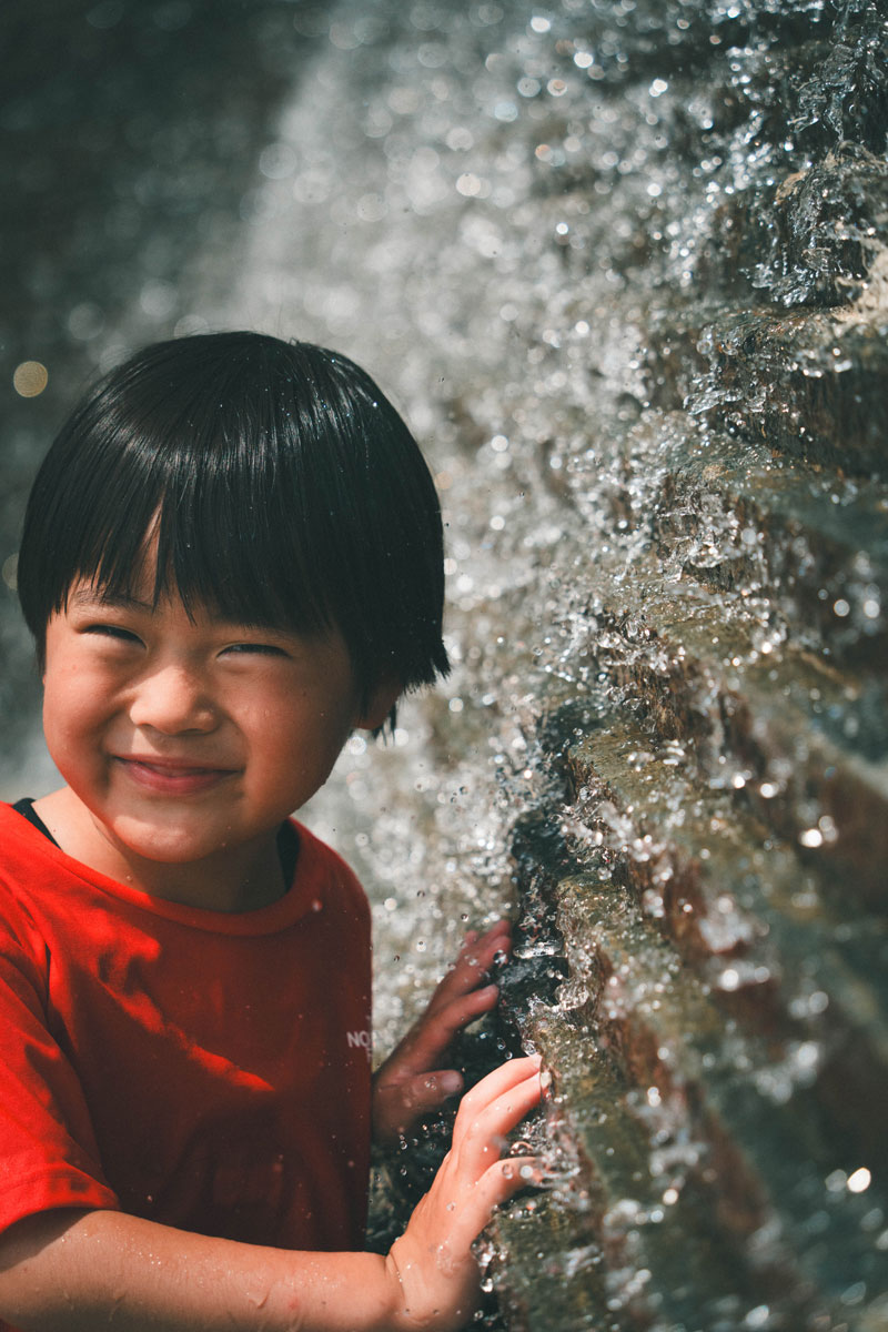 ゆっくり下部へと流れていくスタイル。奥の方には水遊びする子どもたちが。