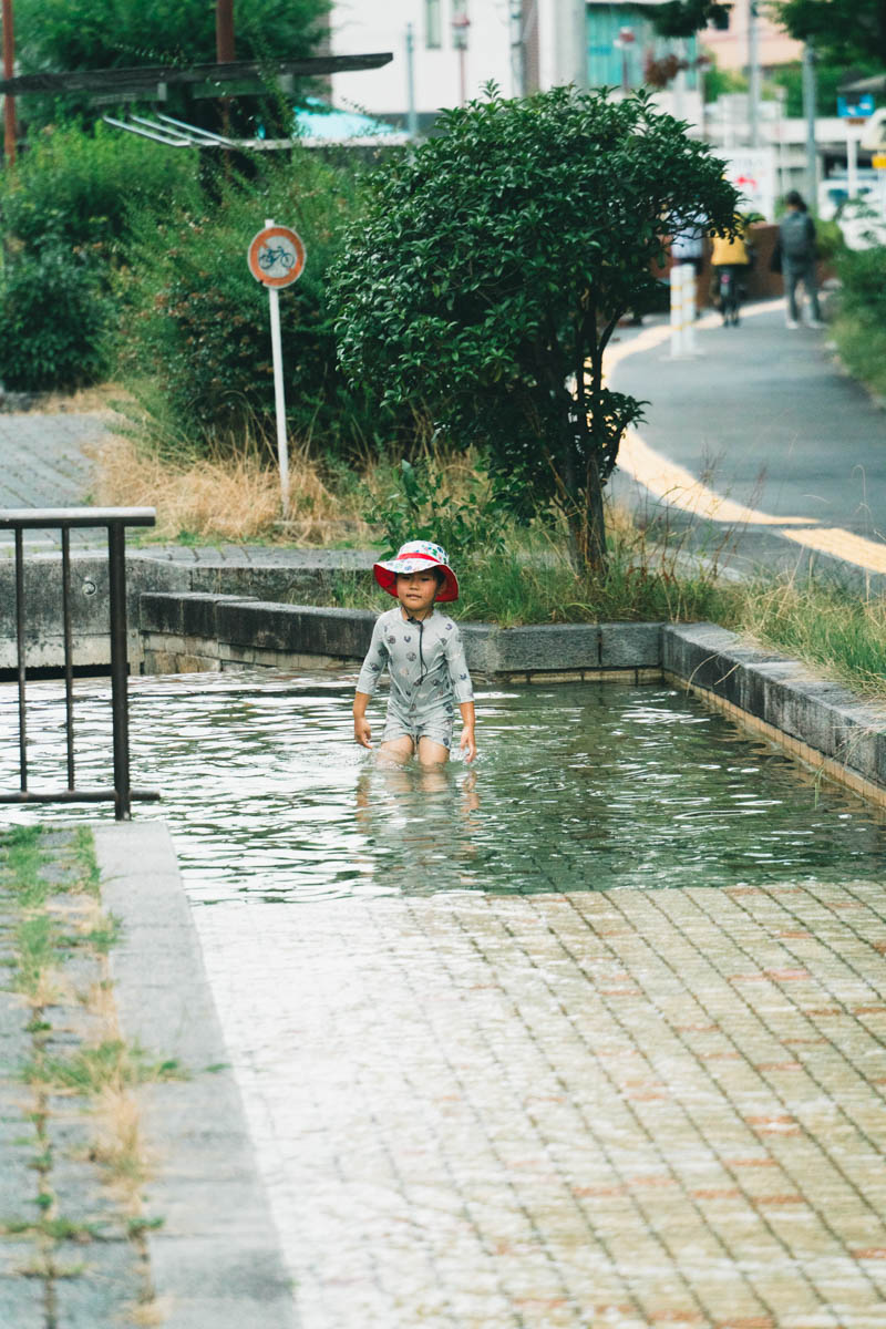 また、山田池公園内にはここ以外にも南地区芝生広場横にある、約170mの人工水路「流れ」でも水遊びが可能。
